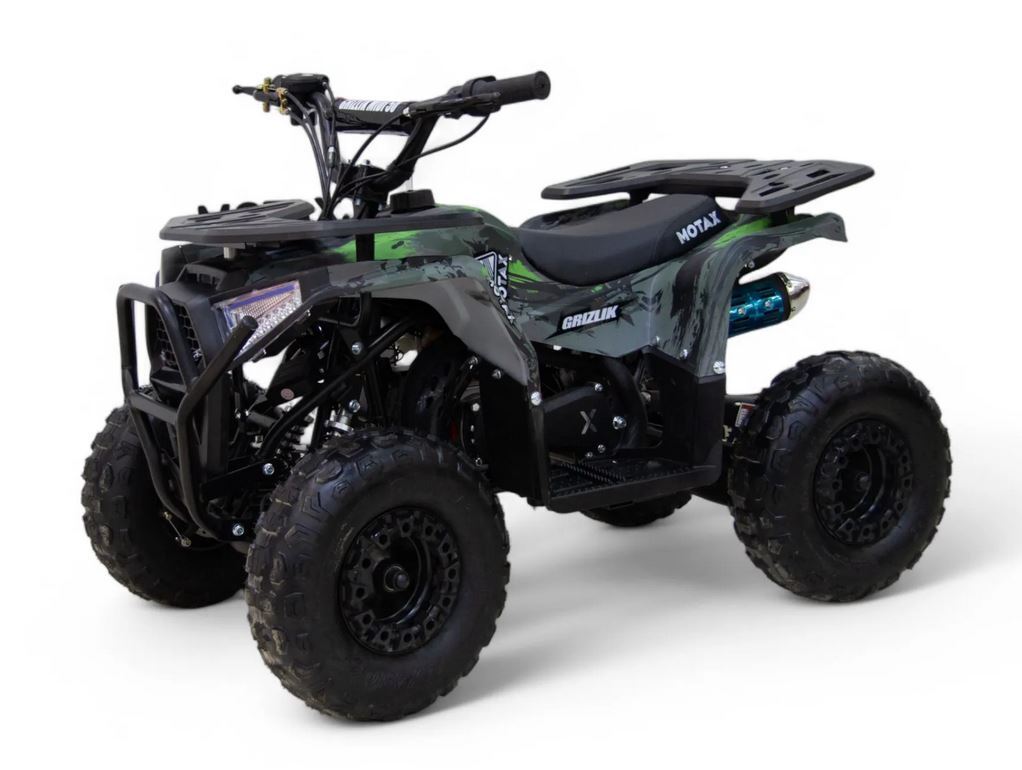 ATV Motax GRIZLIK MIDI ES (с электростартером) - детский квадроцикл в классическом, утилитарном дизайне. Этот квадроцикл оборудован 6 дюймовыми колёсами и шинами с внедорожным протектором. Отлично подойдёт для детей от 4 до 9-10 лет.