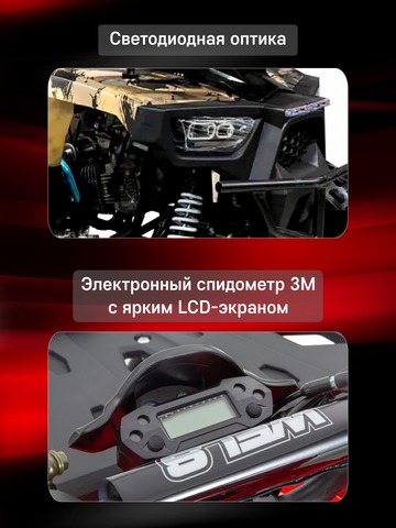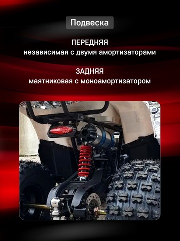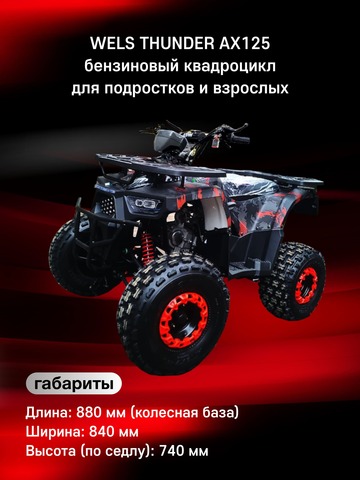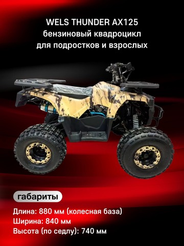 Комплект для сборки квадроцикла Wels AX125 оснащен 4-тактным бензиновым двигателем с воздушным охлаждением, что обеспечивает надежную работу и отличное ускорение. С автоматическим сцеплением и полуавтоматической трансмиссией (F-N-R) даже начинающий водитель легко освоит его. Важные элементы безопасности включают дисковый гидравлический тормоз на задней и передние барабанные тормоза с удобными рычагами на руле. В комплектацию также входит аварийная чека, которая мгновенно отключает двигатель в случае непредвиденной остановки. Ограничитель скорости позволяет настроить скорость до безопасных 5–10 км/ч для самых маленьких райдеров. Высота по седлу — 74 см, что подходит для подростков разного роста. Благодаря легкому весу (120 кг) и компактной колесной базе в 88 см, квадроцикл отлично маневрирует даже на узких и сложных участках. Прочная подвеска обеспечивает плавный ход, у данной модели задний привод, усиленная цепь 428, колеса диаметром 8 дюймов и прочные стальные диски.